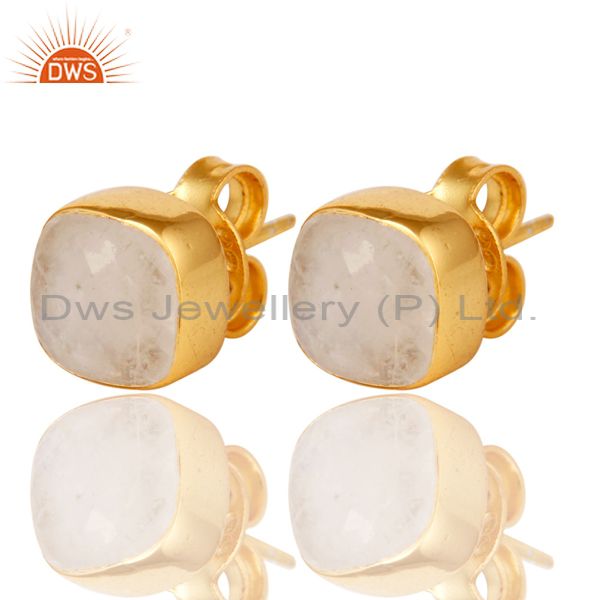 14K Yellow Gold Plated Sterling Silver Rainbow Moonstone Womens Stud Earrings