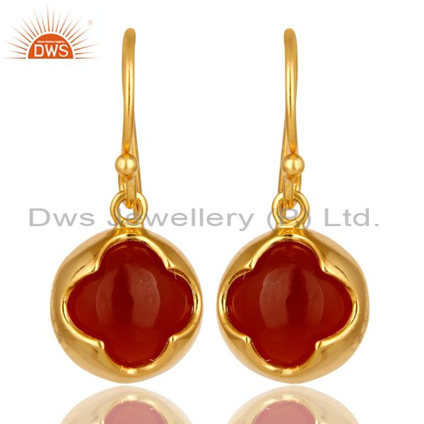 14K Yellow Gold Plated Sterling Silver Red Onyx Gemstone Designer Earrings