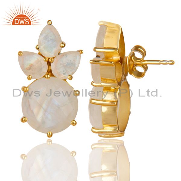 18K Gold Plated 925 Sterling Silver Rainbow Moonstone Prong Set Studs Earrings