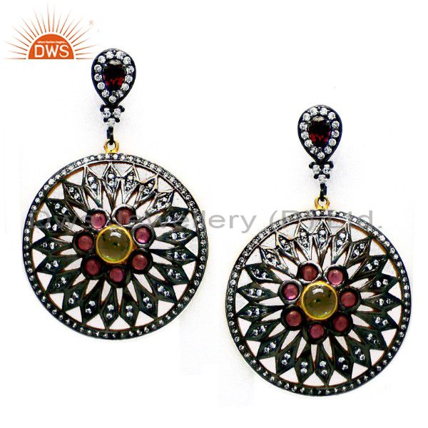 18K Gold Plated Sterling Silver Cz And Tourmaline Designer Dangle Earrings