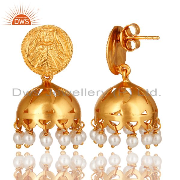 18K Gold Plated Sterling Silver Natural Pearl Jhumka Traditional Earrings