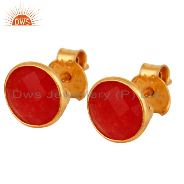 18K Gold Plated Sterling Silver Red Aventurine Bezel Set Ladies Stud Earrings