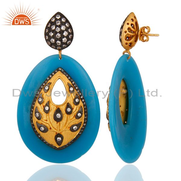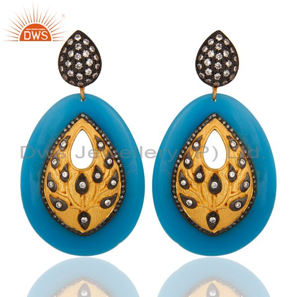18K Gold Plated Sterling Silver White Zircon Bakelite Leaf Design Earrings