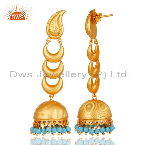 18k Gold Plated Traditional Jhumka Earrings With Sterling Silver & Turquoise