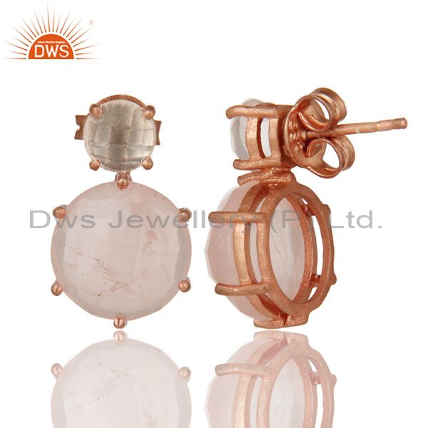 18K Rose Gold Plated Sterling Silver Crystal Quartz And Rose Quartz Stud Earring