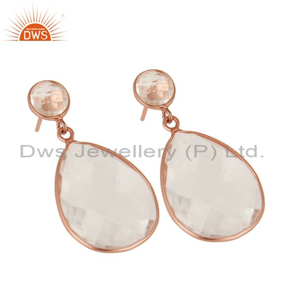 18K Rose Gold Plated Sterling Silver Crystal Quartz Bezel Set Drop Earring