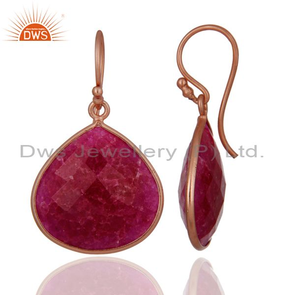 18K Rose Gold Plated Sterling Silver Faceted Ruby Bezel Set Dangle Earrings