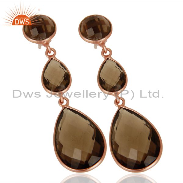 18K Rose Gold Plated Sterling Silver Faceted Smoky Quartz Triple Drop Earrings