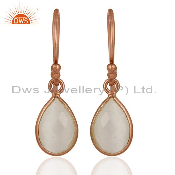 18K Rose Gold Plated Sterling Silver Faceted White Moonstone Bezel Drop Earrings