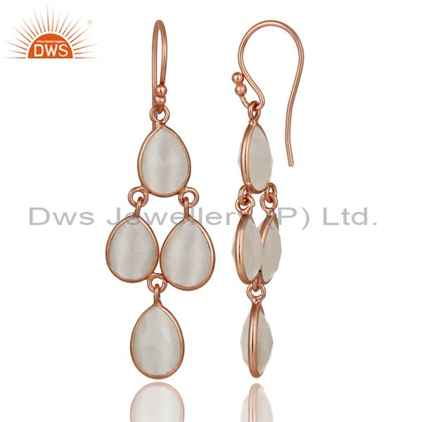 18K Rose Gold Plated Sterling Silver White Moonstone Chandelier Earrings