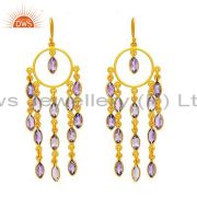 18K Yellow Gold Over Sterling Silver Amethyst Gemstone Chandelier Earrings