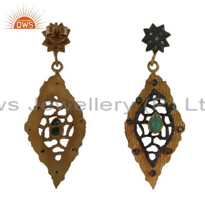 18K Yellow Gold Over Sterling Silver Emerald And Pave Diamond Dangle Earrings