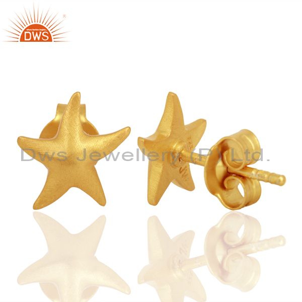 18K Yellow Gold Plated 925 Sterling Silver Star Design Studs Earrings Jewelry