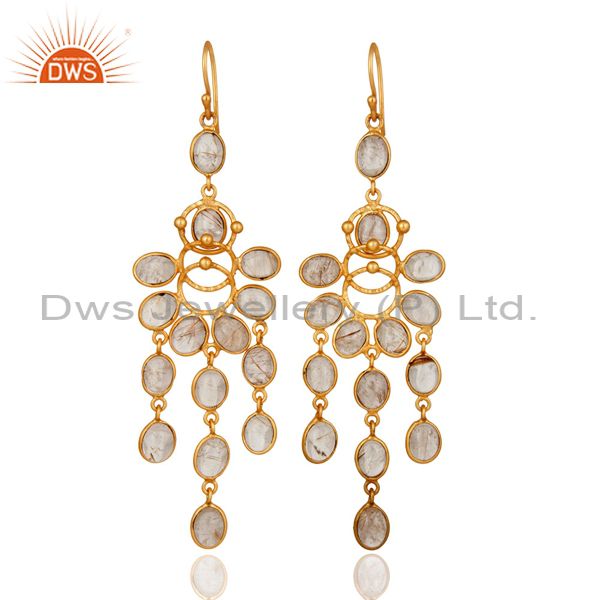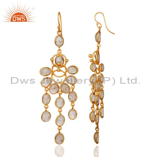 18K Yellow Gold Plated Golden Rutilated Quartz Gemstone Designer Earrings Gift