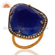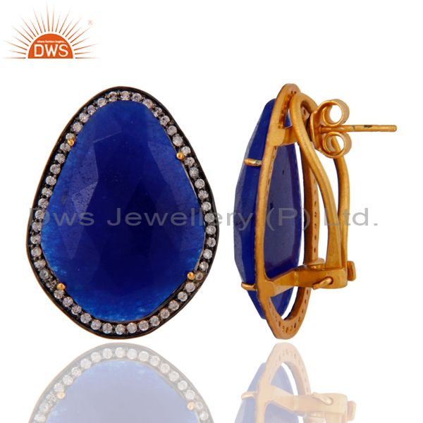 18K Yellow Gold Plated Sterling Silver Cz & Blue Aventurine Ladies Stud Earrings