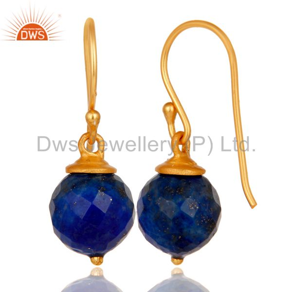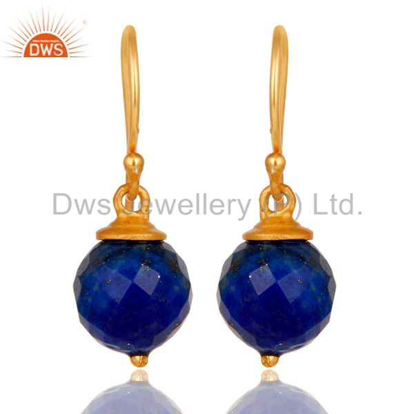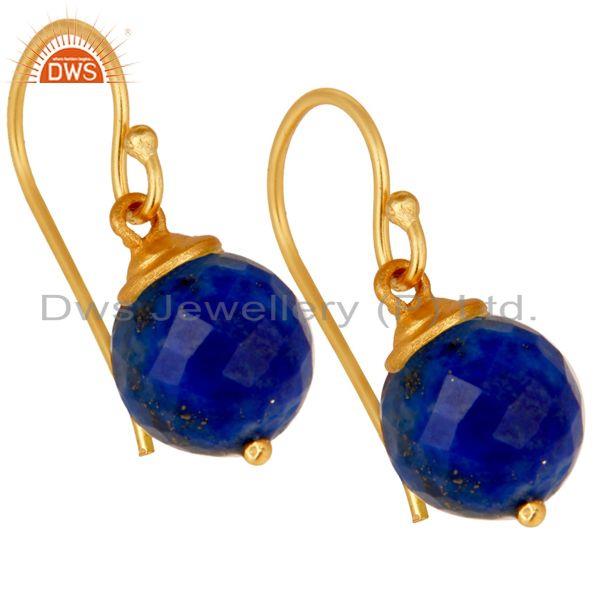 18K Yellow Gold Plated Sterling Silver Lapis Dangle Hook Earrings For Womens