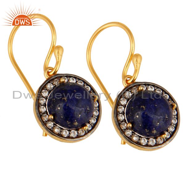 18K Yellow Gold Plated Sterling Silver Lapis Lazuli And cz Dangle Earrings