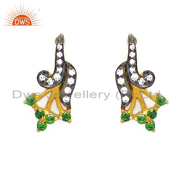 18K Yellow Gold Plated Sterling Silver Round Green Cubic Zirconia Stud Earring