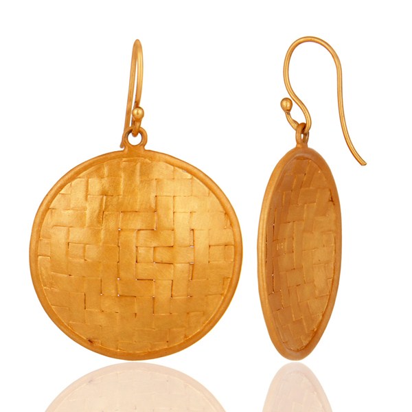 18K Yellow Gold Plated Sterling Silver Wire Woven Disc Design Earrings