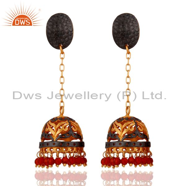 18Kt. Yellow Gold Plated Red Onyx Wedding Party Jewelry Unique Designer Earrings