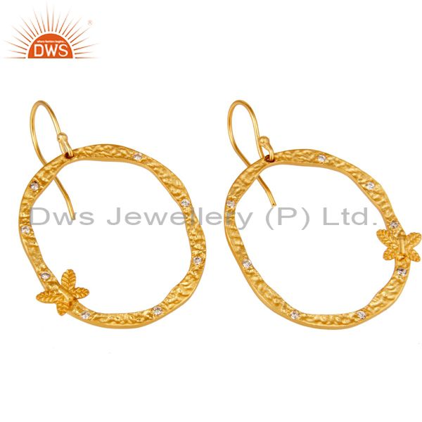 22k Gold Plated Handmade Butterfly Style White Zirconia Brass Dangle Earrings