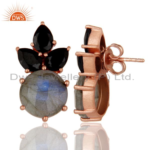 22K Rose Gold Plated Sterling Silver Black Onyx And Labradorite Stud Earrings