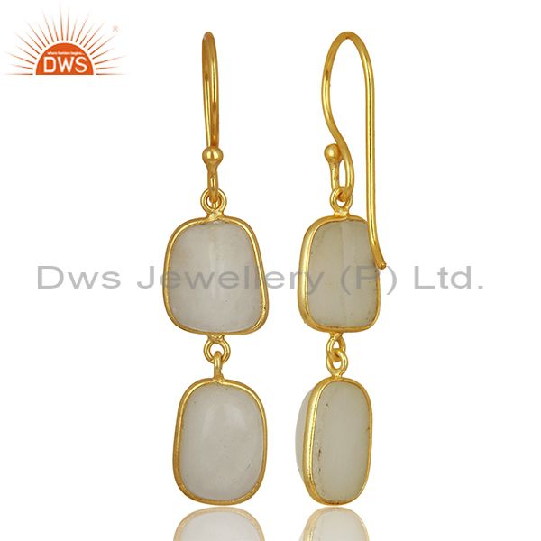 22K Yellow Gold Plated Brass White Agate Bezel Set Gemstone Dangle Earrings