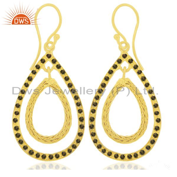 22K Yellow Gold Plated Sterling Silver Smoky Quartz Gemstone Dangle Earrings