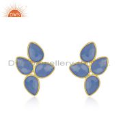 925 Silver Gold Plated Blue Chalcedony Gemstone Womens Earrings Jewelry