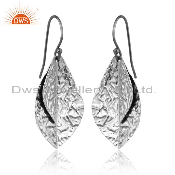 925 Sterling Silver Handmade Oxidized Leaf Textured Earrings