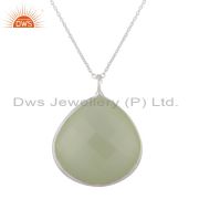 925 Sterling Silver Prehnite Chalcedony Gemstone Bezel Set Teardrop Earrings