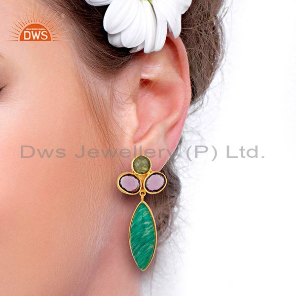 Amazonite Gemstone Handmade Gold Plated Fsahion Earrings Jewelry