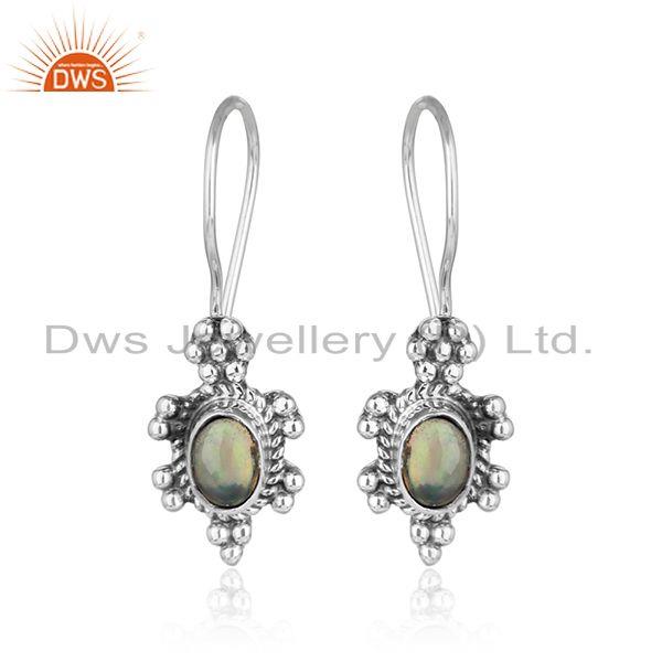 Antique 925 Silver Oxidized Ethiopian Opal Gemstone Earrings