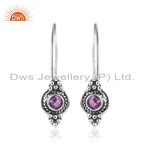 Antique Oxidized 925 Silver Natural Amethyst Gemstone Earrings