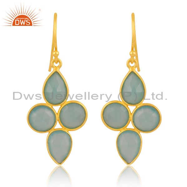 Aqua Chalcedony 18K Gold Plated Sterling Silver Earring