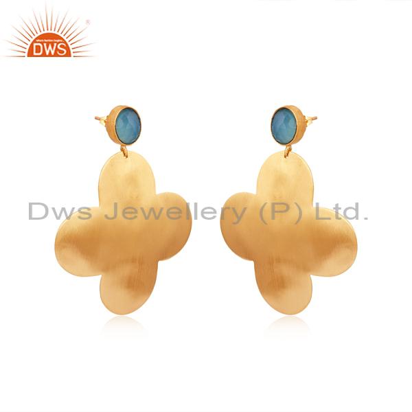 Aqua Chalcedony Flower Earrings: Anti-Tarnish
