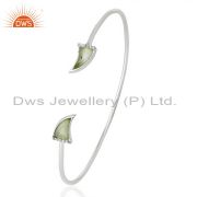 Aqua Chalcedony Tiny Horn Cz Studded Post 92.5 Sterling Silver Earring