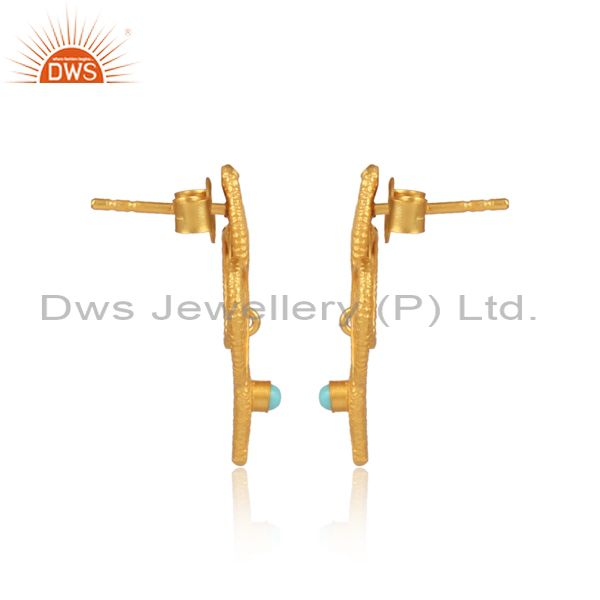 Arizona Turquoise Set Gold On 925 Silver Classic Earrings