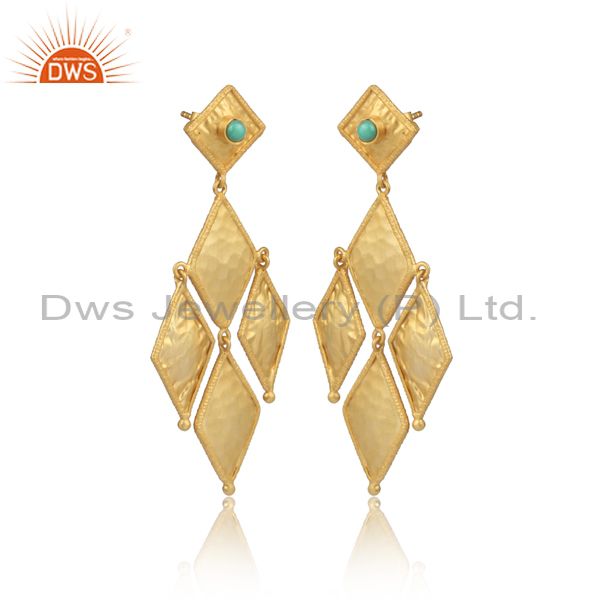 Arizona Turquoise Set Gold On Silver Rhombus Long Earrings