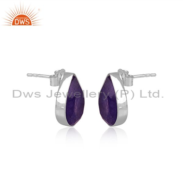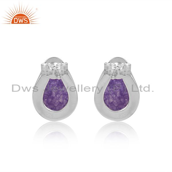 Aventurine Natural Amethyst Pear Cut Fine Silver Earrings