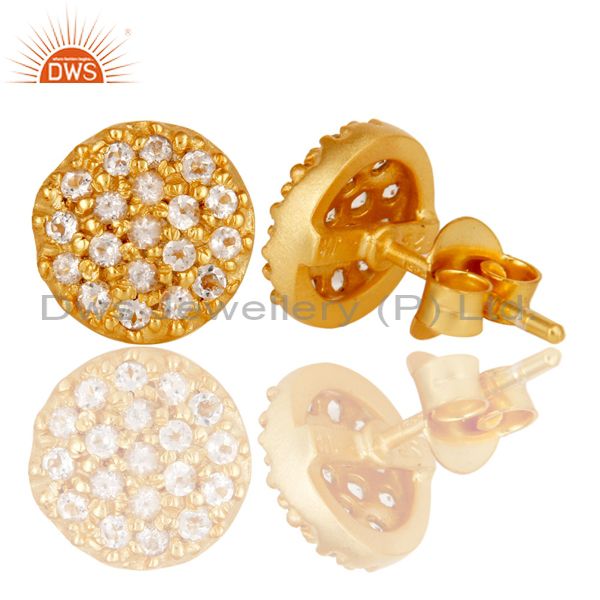 Beautiful Handmade 18k Gold Plated Sterling Silver Earrings with White Topaz