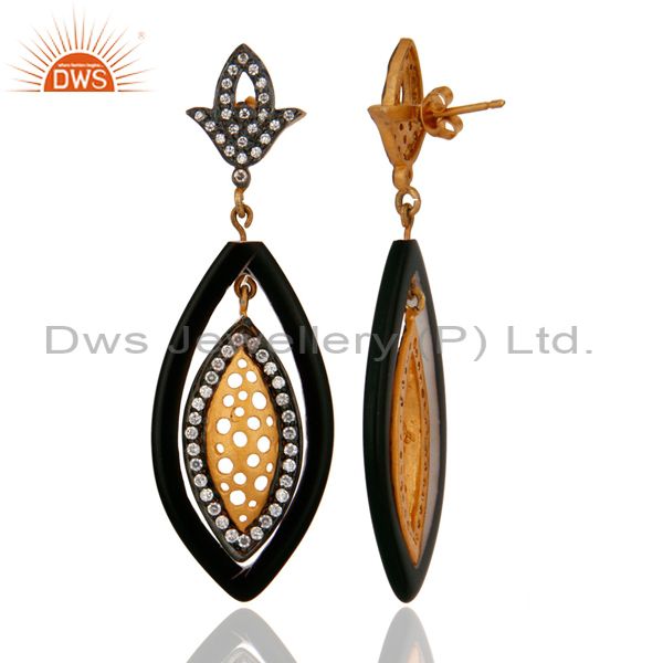 Black Bakelite And Cubic Zirconia Yellow Gold Plated Dangle Earrings