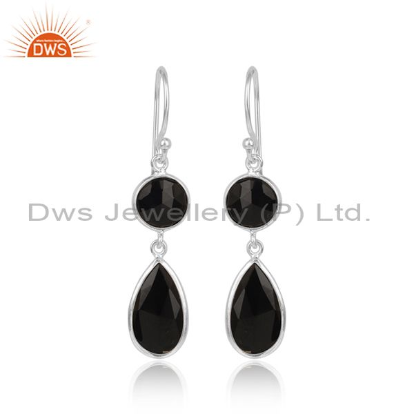Black Onyx Gemstone Designer 925 Sterling Silver Hook Earrings