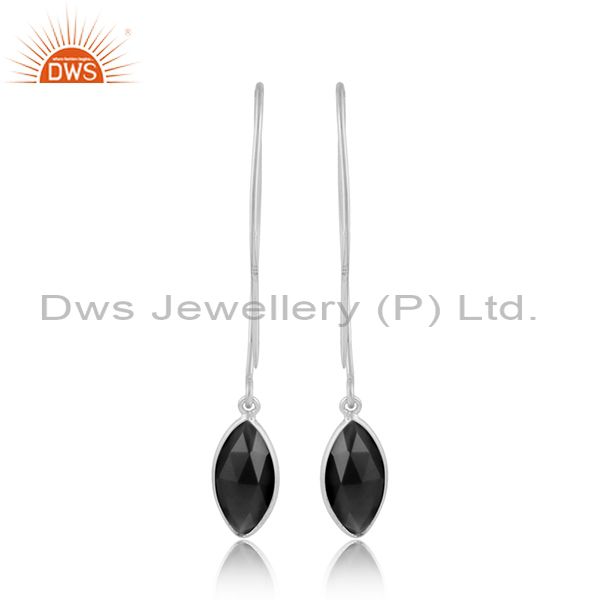 Black Onyx Gemstone Designer Sterling Silver Womens Earrings
