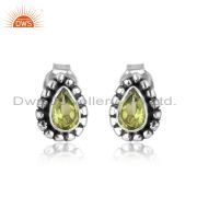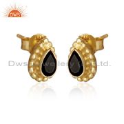 Black Onyx Gemstone Pear Shape Oxidized 925 Silver Stud Earring