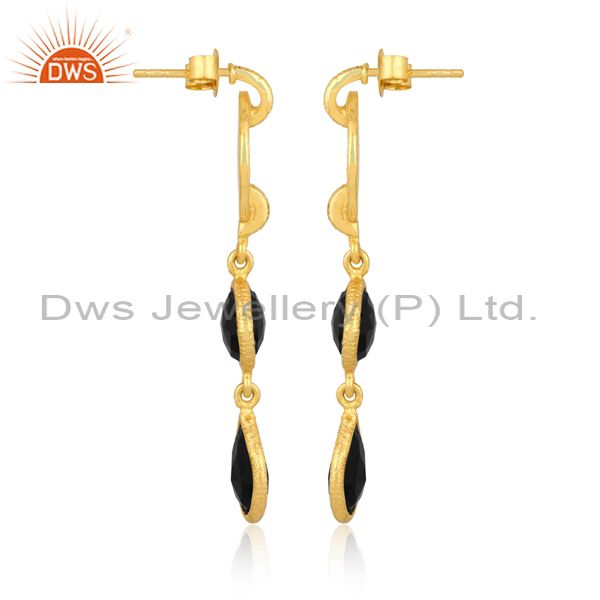 Black Onyx Set Gold On 925 Silver Handmade Textured Earrings