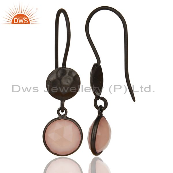 Black Oxidized 925 Sterling Silver Dyed Chalcedony Bezel Set Drops Earrings