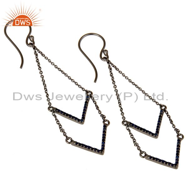 Blue Sapphire and Black Oxidized Sterling Silver V shae Drop Dangler Earring