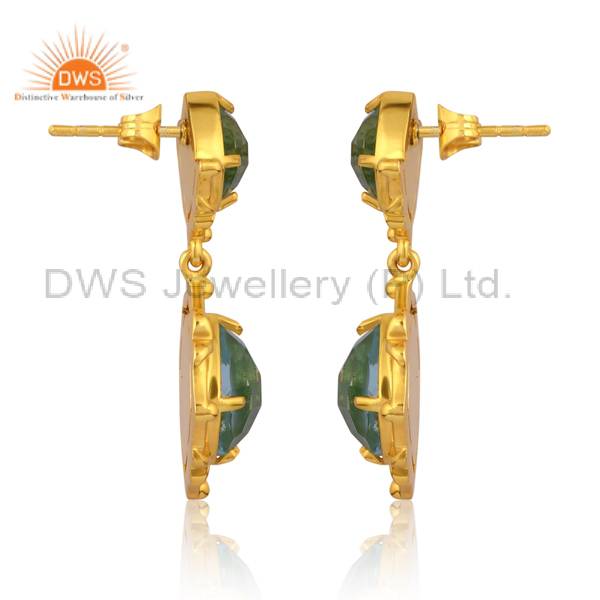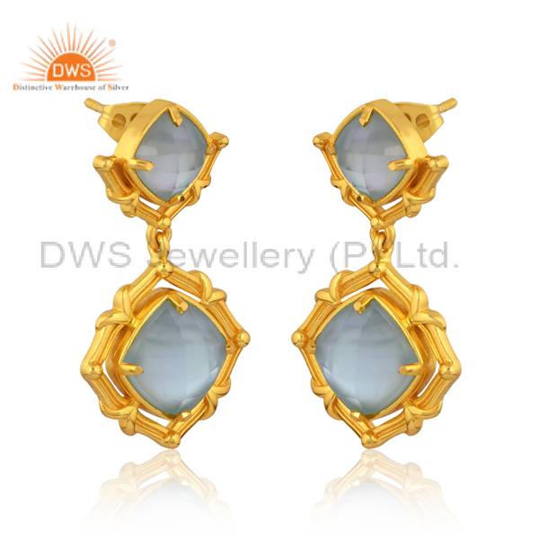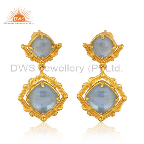 Blue Topaz Doublet Glass Nacre Full Brass Earrings Stunning