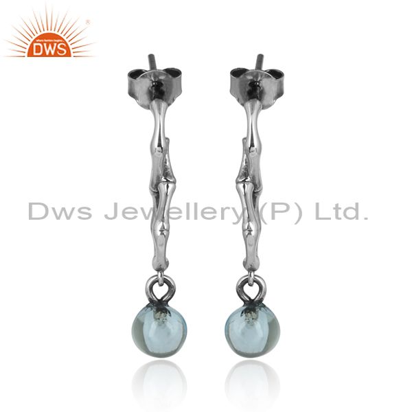 Blue Topaz Set Handmade Oxidized Silver Long Drop Earrings
